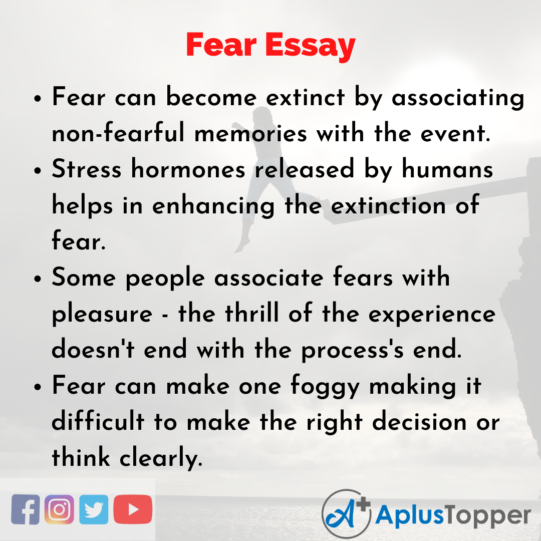 Short Essay on Fear is usually given to classes 1, 2, 3, 4, 5, and 6.