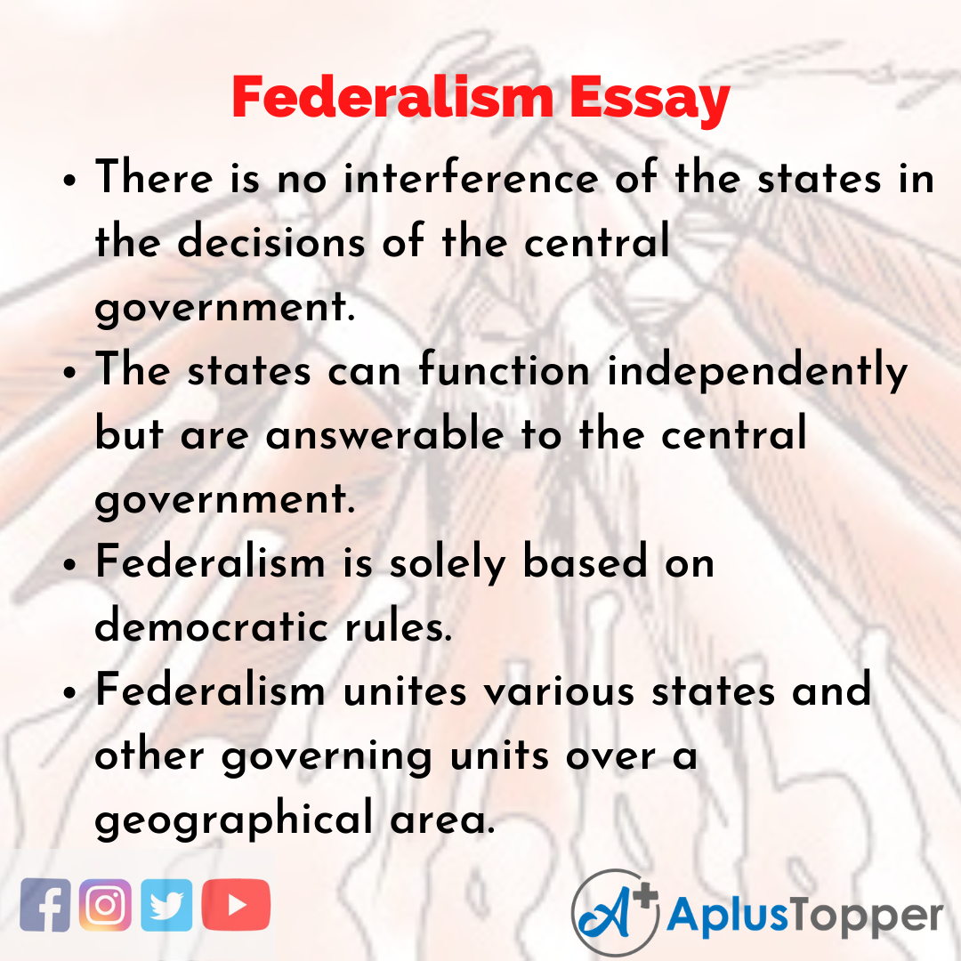 Short Essay on Federalism is usually given to classes 1, 2, 3, 4, 5, and 6.