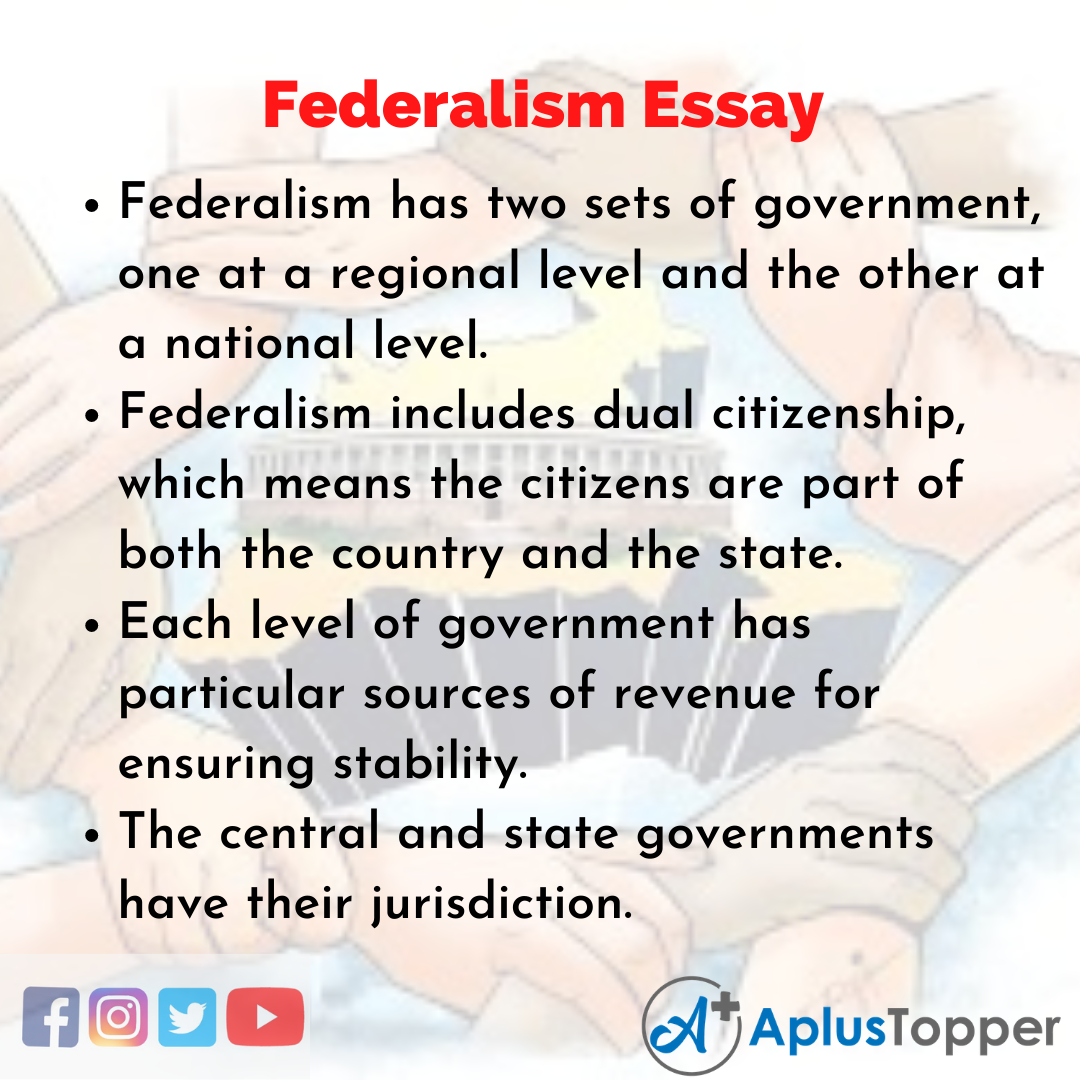 We are providing students with essay samples on a long essay of 500 words and a short essay of 150 words on the topic Federalism for reference.