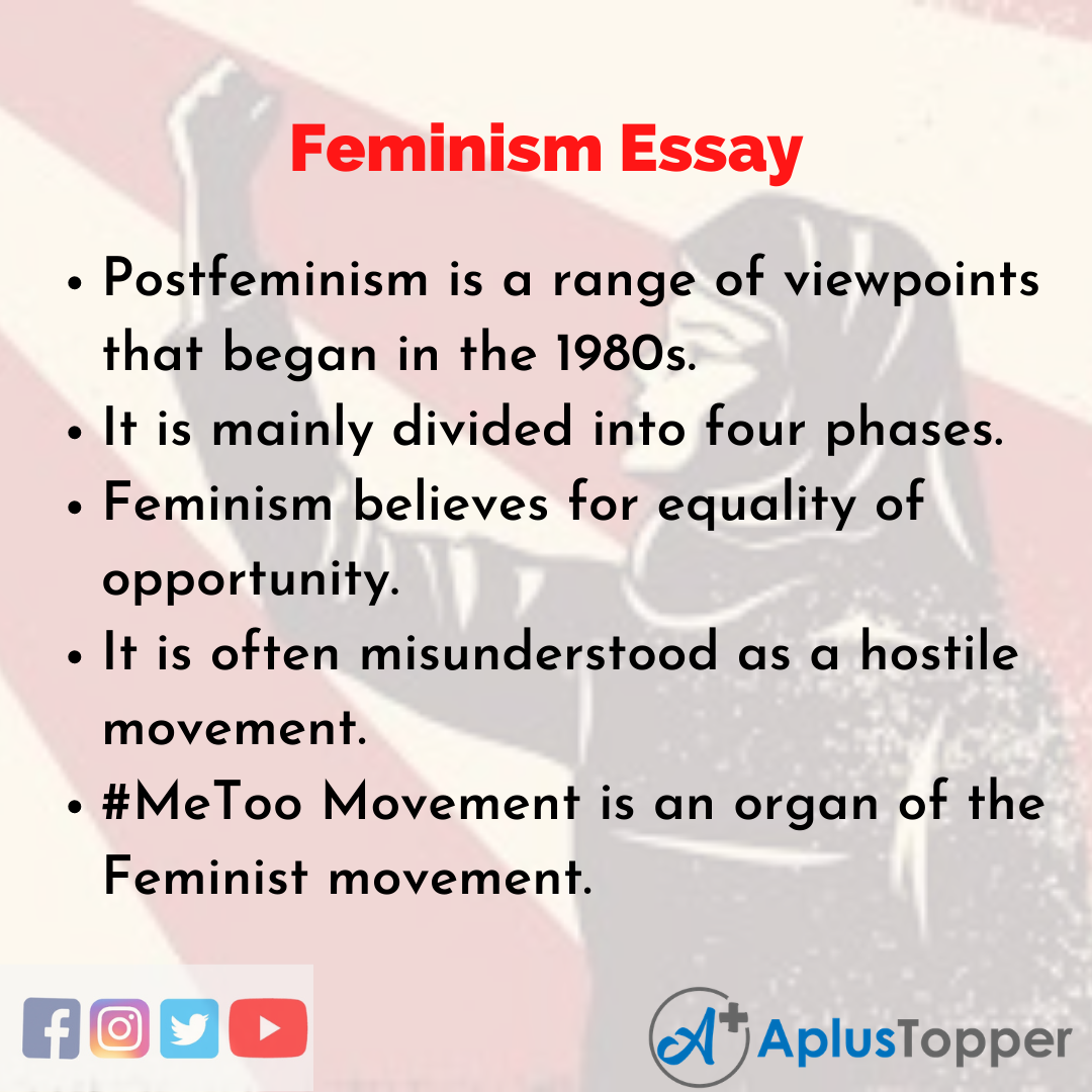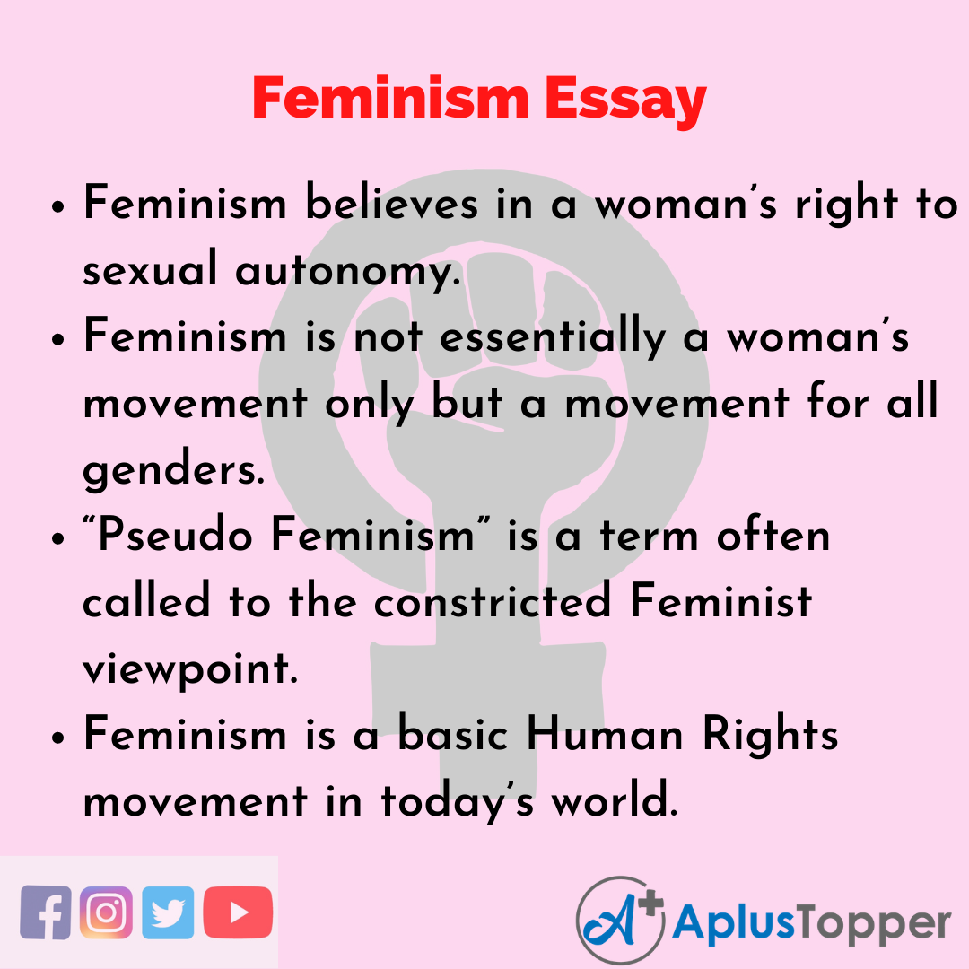 Short Essay on Feminism Essay is usually given to classes 1, 2, 3, 4, 5, and 6.