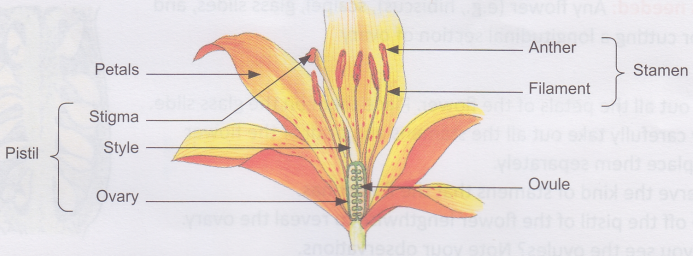 Materials needed: Any flower (e.g., hibiscus), scalpel, glass slides, and a blade for cutting a longitudinal section of ovary.