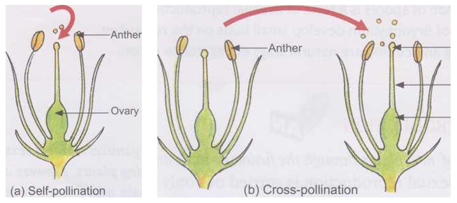 - Self-pollination In self-pollination, pollen grains are transferred from the anther to the stigma of the same flower.