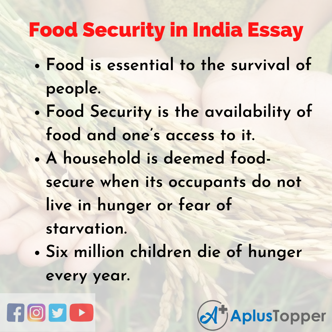 Long Essay on Food Security in India is usually given to classes 7, 8, 9, and 10.