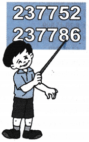 Solution: First of all let us compare the number of digits in the given numbers. Both the numbers have six digits each. Now, let us compare the digits starting from the left. The first, second, third, and fourth digits from the left are the same in both the numbers 237752 and 237786. The fifth digit in the number 237786 is 8 which is greater than the corresponding digit in the number 237752 which is 5. So, 237786 is greater than 237752.