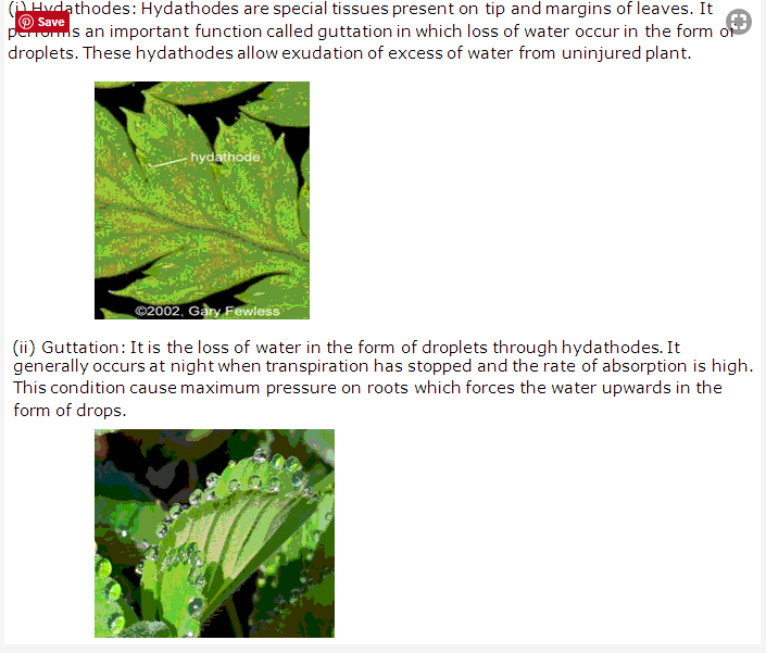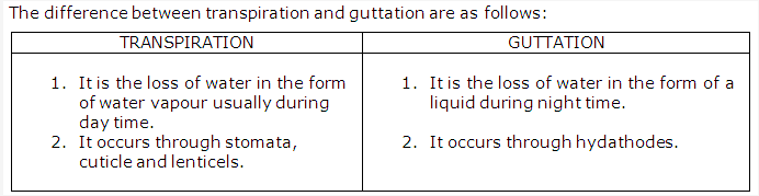 Transpiration: It is the loss of water in the form of water vapour usually during day time.