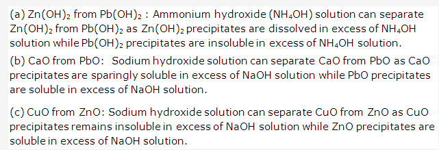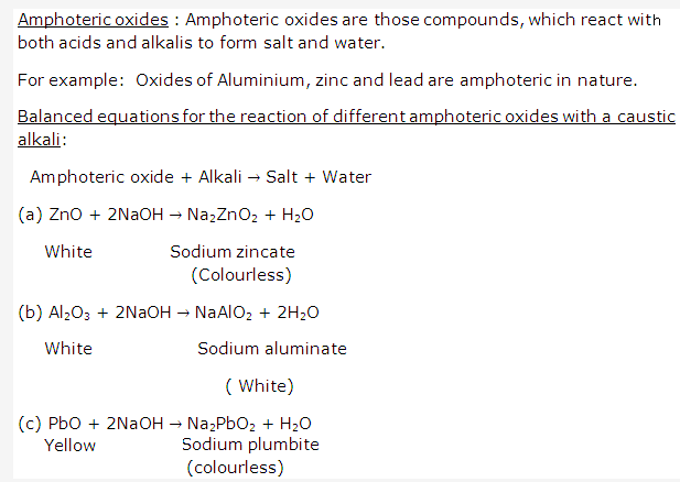 Examples of amphoteric hydroxides are: Zn(OH)2, Al(OH)3.