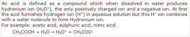Hydroxide ion and metallic ion and molecules of weak alkali./ - An acid in a solution furnishes the ions: