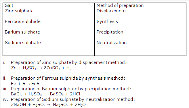 - Zinc sulphate = Zinc and dilute sulphuric acid