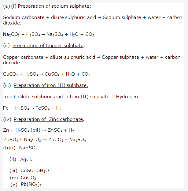 - Sodium sulphate = Sodium carbonate solution and dilute sulphuric acid