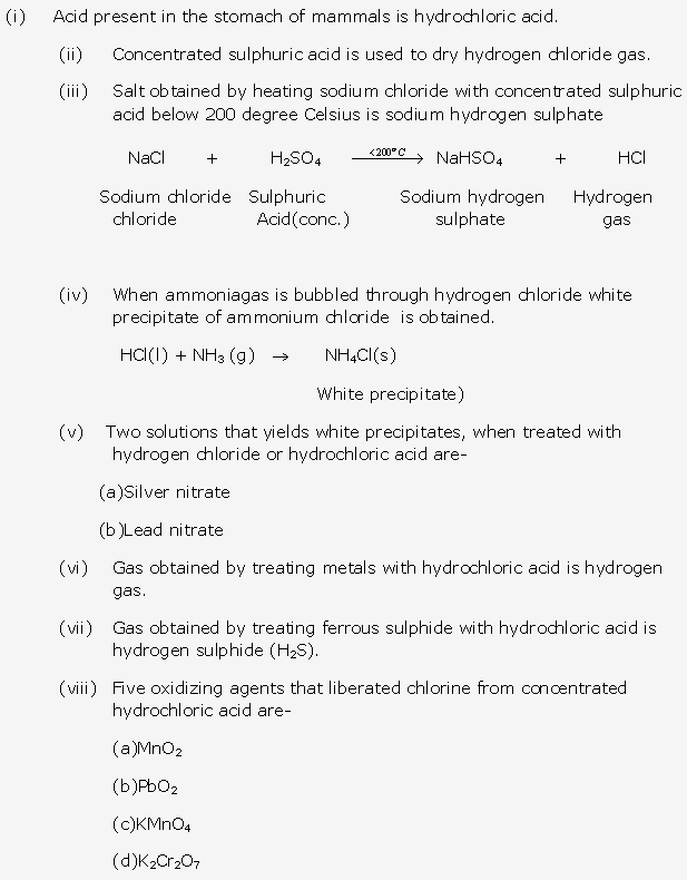 Frank ICSE Solutions for Class 10 Chemistry – Study of Compounds-I: Hydrogen Chloride