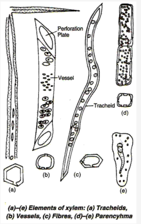 Xylem is a complex plant tissue composed of several types of cells which are: