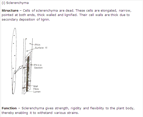 Sclerenchyma gives strength, rigidity and flexibility to the plant body, thus enabling it to withstand various strains.
