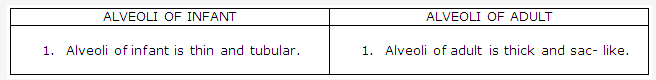 - Alveoli = To increase the surface area for exchange of gases.