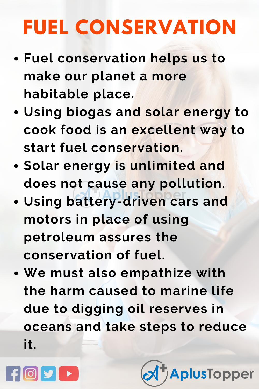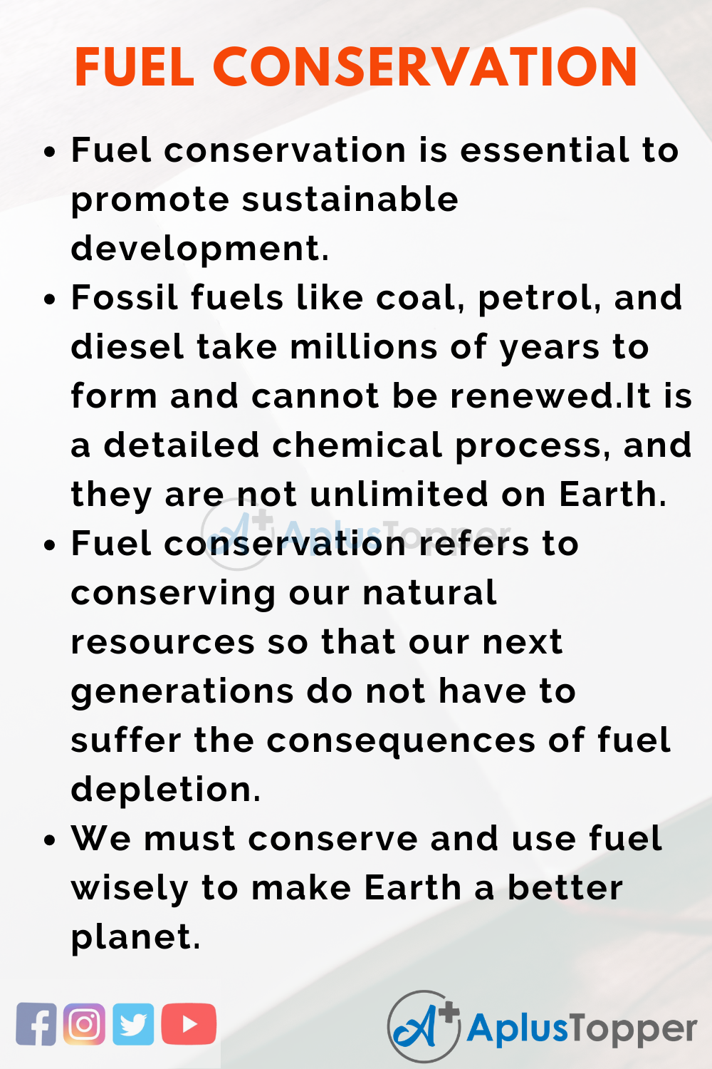 Essay on Fuel Conservation is usually given to classes 7, 8, 9, and 10.