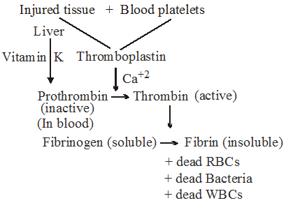 When bacteria or any other disease causing pathogen enters the body. It is distroyed by WBCs (one type of WBCs; called lymphocytes produce Antibodies against specific pathogen) and so immunity against the disease is created in the body. - Clotting of blood :