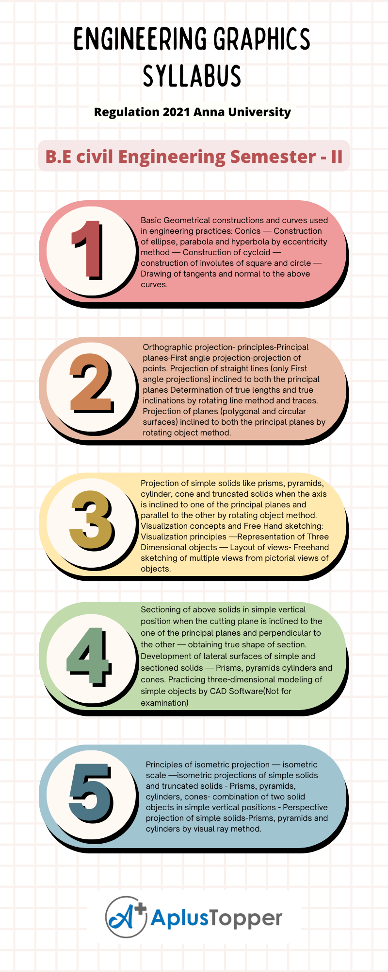 Anna University, Subject code – GE3251, deals with the B.E civil Engineering Semester – II Engineering Graphics syllabus regulation 2021 relating to affiliated institutions. From here, Students can get assistance in preparing notes to excel in academic performance.