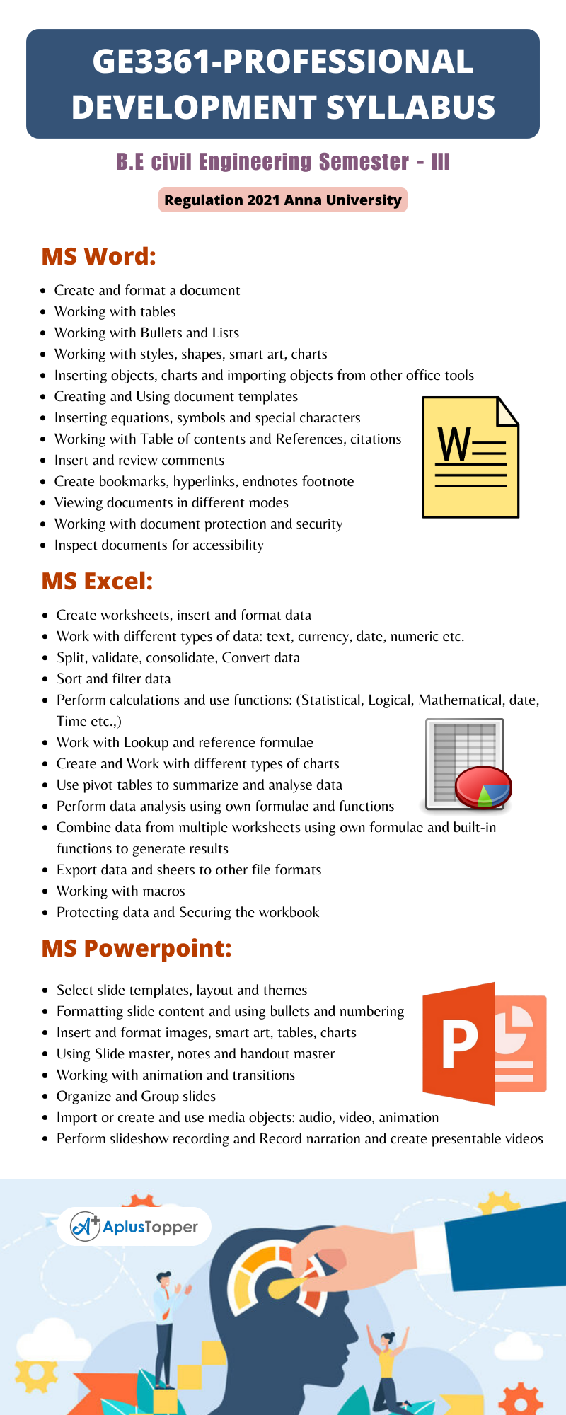 Anna University, Subject code – GE3361 deals with the B.E civil Engineering Semester – III Professional Development syllabus regulation 2021 relating to affiliated institutions. From here, Students can get assistance in preparing notes to excel in academic performance.
