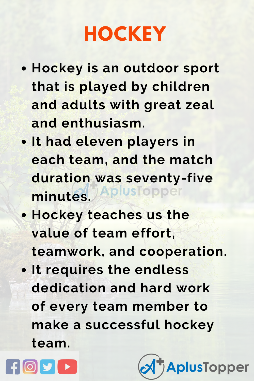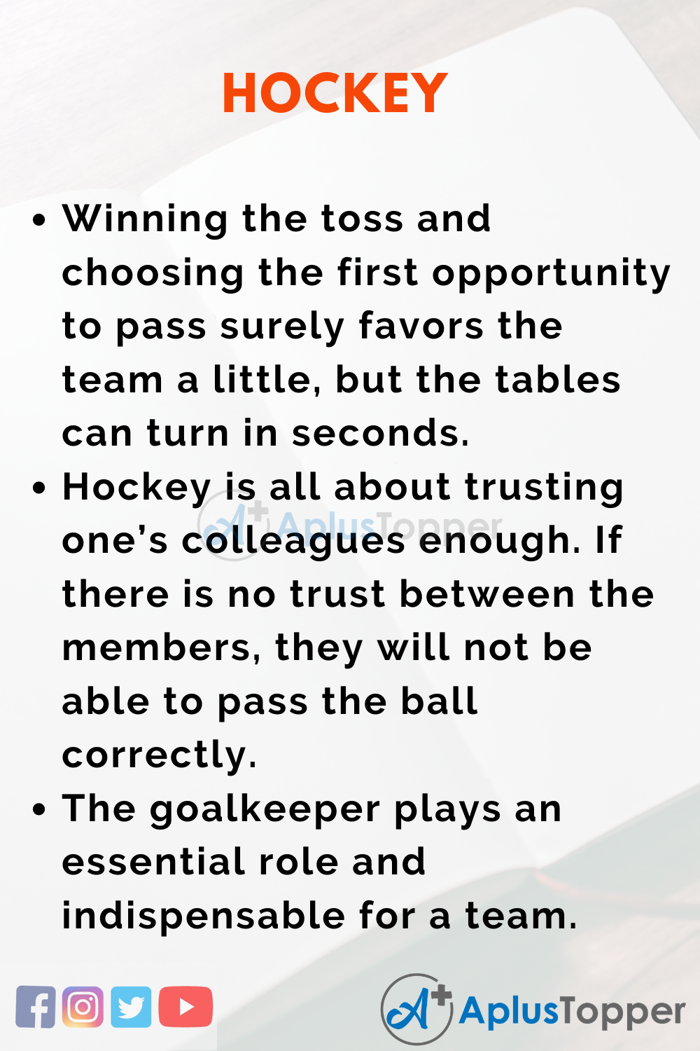 Hockey essay is usually given to classes 7, 8, 9, and 10.