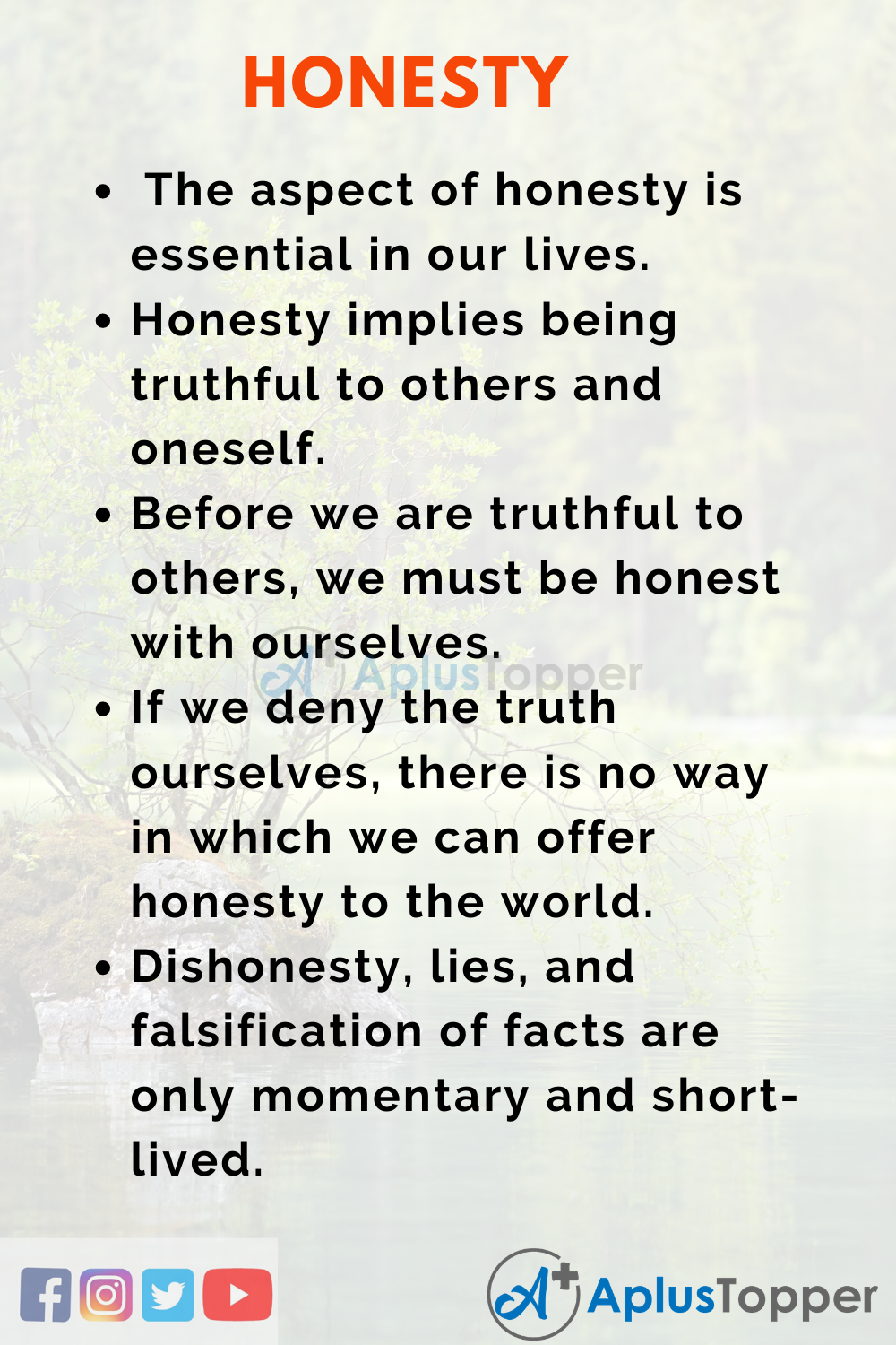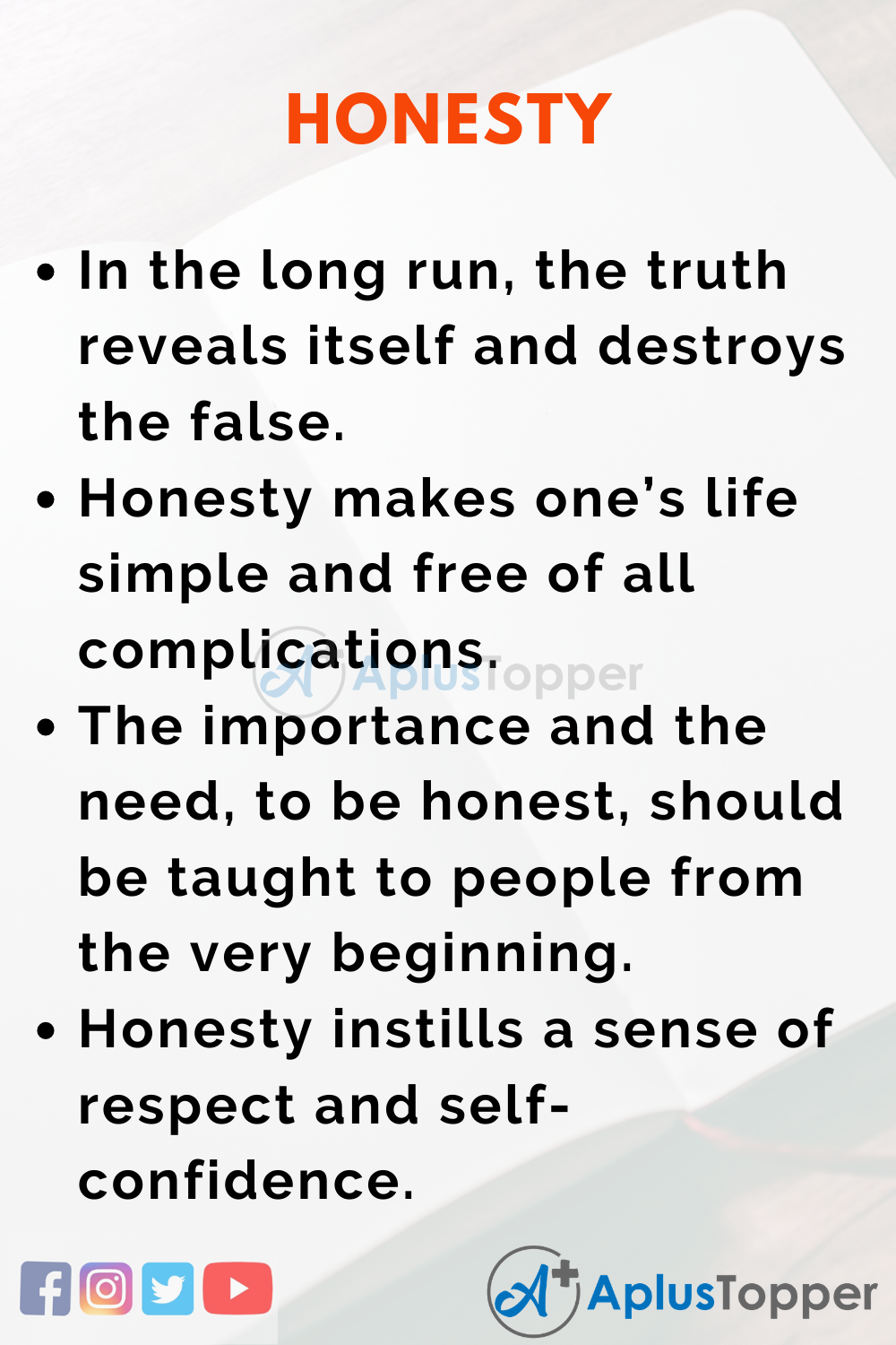 Honesty Essay: The importance of honesty has been instilled in us since the very beginning. Even though very preachy in its tone, it indeed is a wise thought. We were taught about it in the closed confines of our Moral Science classes in school; as we grew up, practical life taught us a lesson on the importance of being honest.