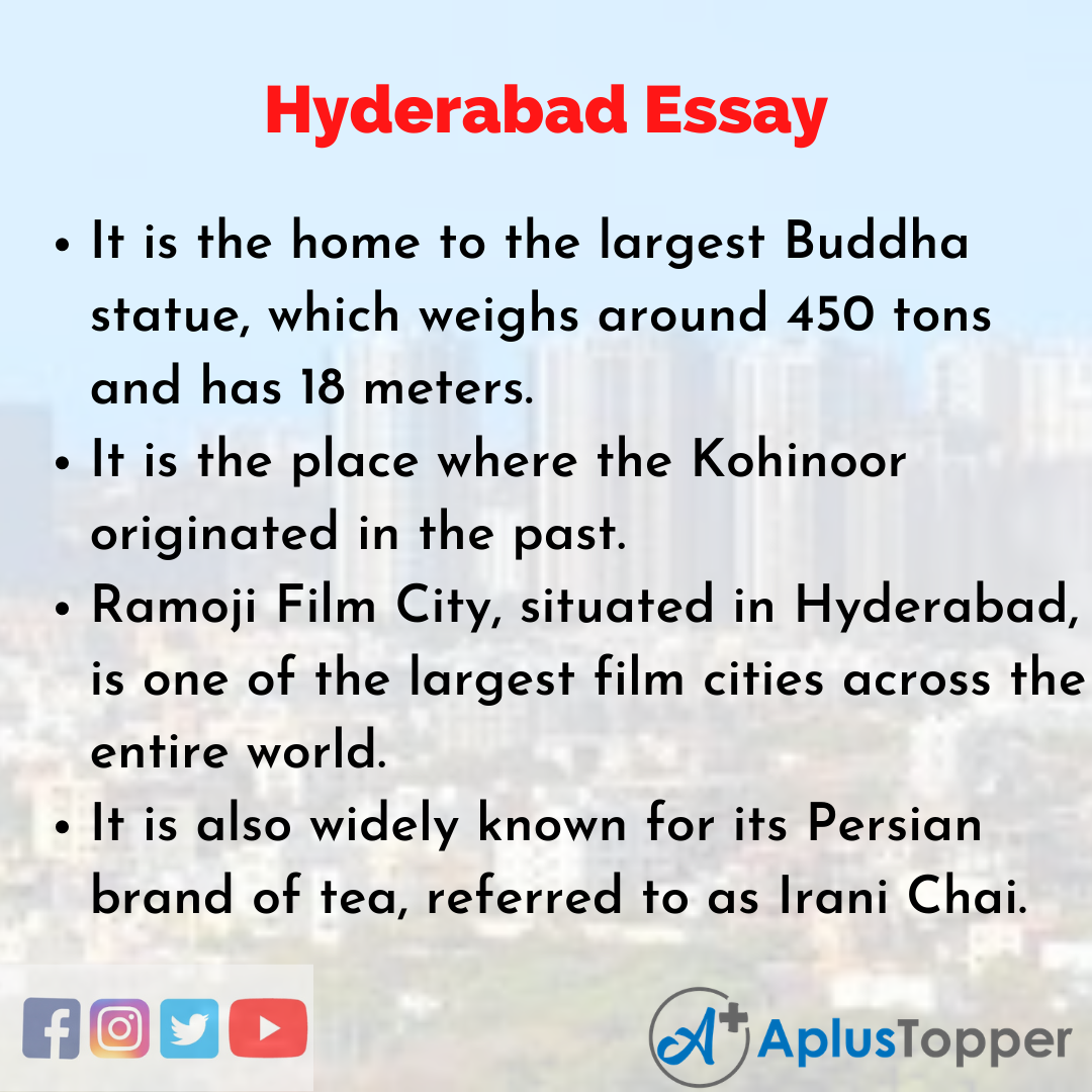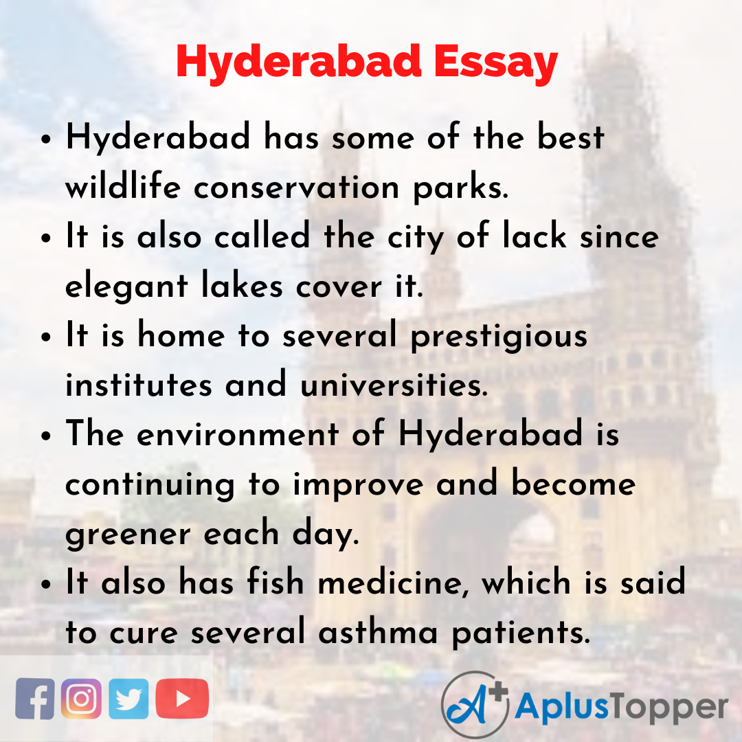 Long Essay on Hyderabad is usually given to classes 7, 8, 9, and 10.