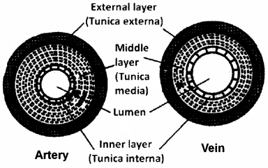 (v) Draw neat labelled diagrams of a cross-section of an artery and a vein.
