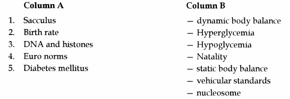 (g) Match the items given in Column A with the most appropriate ones in Column B and rewrite the correct matching pairs.