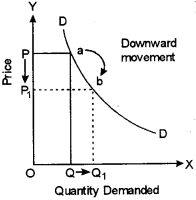 This is also shown in fig. In the diagram, quantity demanded is shown along the X-axis and price on the Y-axis. When the price is OP, OQ quantity of the commodity is demanded. When the price of the commodity falls from OP to OPj, OQj quantity of the commodity is demanded. It means with a fall in the price of the commodity more is demanded. QQX is the extension in demand. In the figure, there is a downward movement along the same demand curve DD from point a to b.