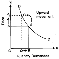 In the diagram, there is an upward movement along the demand curve DD from point c to d. Extension in Demand Extension in demand refers to a situation where more quantity is demanded at a lower price. In the following example, when price of commodity is ₹ 10 per kg, demand is 5 kg, but when price falls to ₹ 5, quantity demanded increases to 10 kg.