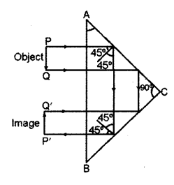 (a) Draw the diagram of a right angled isosceles prism which is used erect. [3]