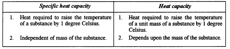 (b) (i) State two differences between “Heat Capacity” and “Specific Heat Capacity”. [3]