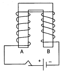 (a) The diagram shows a coil wound around a U shape soft iron bar AB.