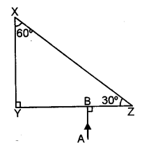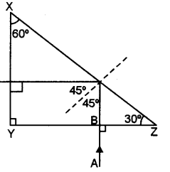 (e) The following diagram shows a 60°, 30°, 90° glass prism of critical angle 42°. Copy the diagram and complete the path of incident ray AB emerging out of the prism marking the angle of incidence on each surface.[2]