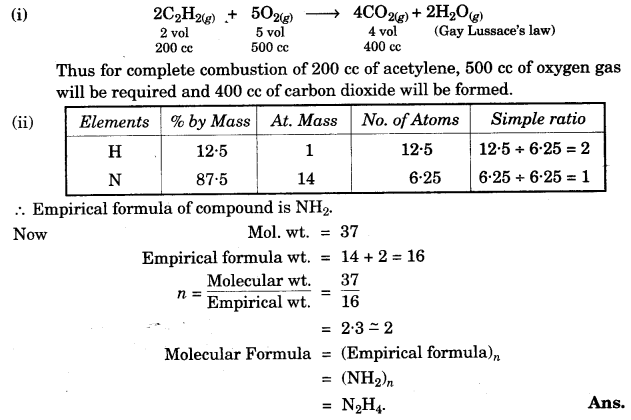 (ii) A gaseous compound of nitrogen and hydrogen contains 12.5% hydrogen by mass. Find the molecular formula of the compound if its relative molecular mass is 37.