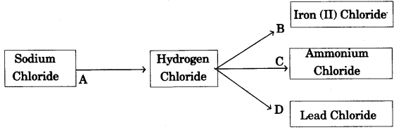 (b) Refer to the flow chart diagram below and give balanced equations with conditions, if any, for the following conversions A to D. [4]