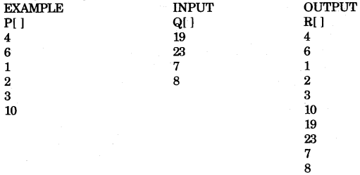Write a program to store 6 elements in any array P, and 4 elements in an array Q and produce a third array R, containing all the elements of array P and Q. Display the resultant array. [15]