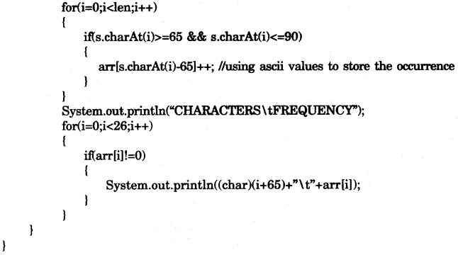 Write a program to input a string in uppercase and print the frequency of each character. [15]
