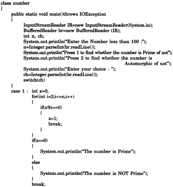 Write a menu driven program to accept a number and check and display whether it is a prime number or not OR an automorphic number or not. (Use switch- case statement)