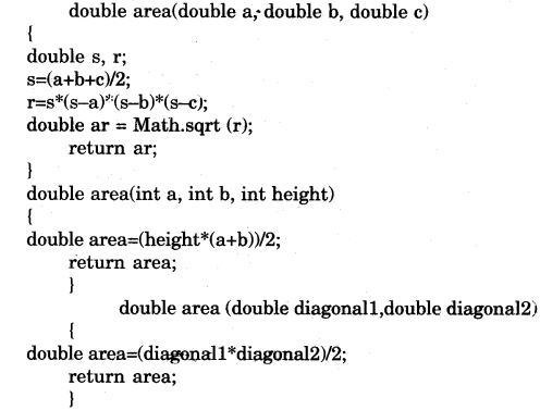 (ii) double area (int a, int b, int height) with three integer arguments, returns the area of a trapezium using the formula: