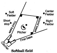 (b) Draw a neat diagram of the Softball field and mark the following positions of the players on the field of play: