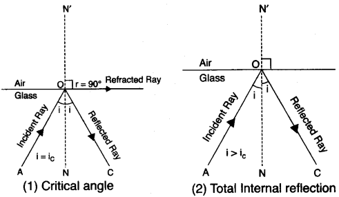 (ii) Write a formula to express the relationship between refractive index of the denser medium with respect to rarer medium and its critical angle for that pair of media. [3]