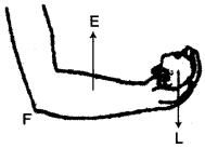 (e) Copy the diagram of the forearm given below, indicate the positions of Load, Effort and Fulcrum. [2]