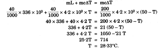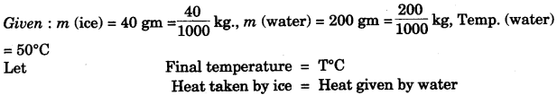 (c) A piece of ice of mass 40 g is dropped into 200 g of water at 50°C.Calculate the final temperature of water after all the ice has melted.