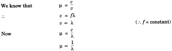 Refractive index (μ) increases with decrease in wavelength (λ).