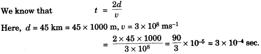 (c) A radar sends a signal to an aeroplane at a distance 45 km away with a speed of 3 x 108 ms-1. After how long is the signal received back from the aeroplane ? [2]
