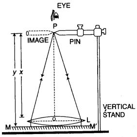 (d) Draw a ray diagram to illustrate the determination of the focal length of a convex lens using an auxiliary plane mirror. [2]