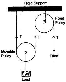(b) A pulley system comprises two pulleys, one fixed and the other movable.