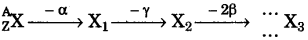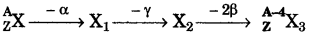 (c) A nucleus \(_{ Z }^{ A }{ X } \) emits an alpha particle followed by γ emission; thereafter it emits two β particles to form X3