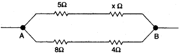 (c) Between the points A and B, total resistance of one arm is R1 (5 + x) and total resistance of other arm is R2 (8 + 4). Now equivalent resistance (R) between A and B is :