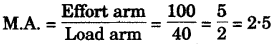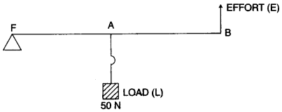 (ii) If FA = 40 cm, AB = 60 cm, then find the mechanical advantage of the lever. [2]