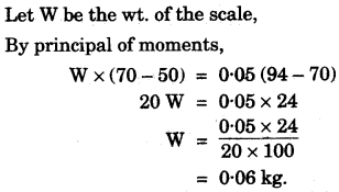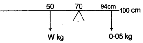 (c) A uniform metre scale can be balanced at the 70.0 cm mark when a mass of 0.05 kg is hung from the 94.0 cm mark.